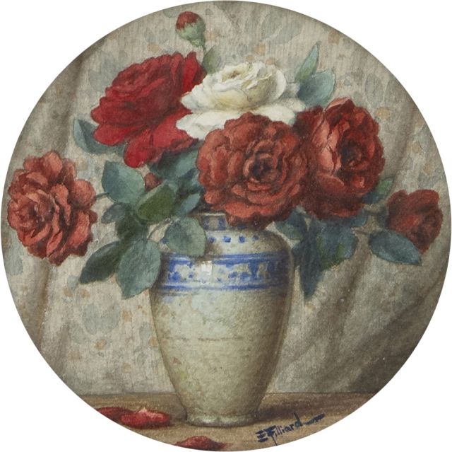 Ernest Filliard | Stilleven met rozen, aquarel op papier, 14,2 x 14,2 cm, gesigneerd r.o.