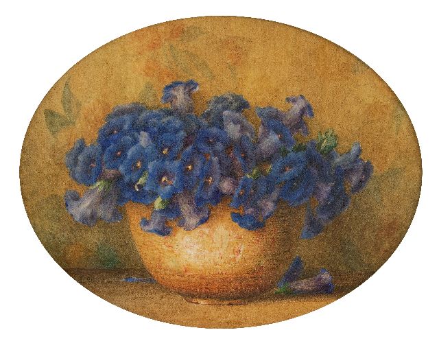 Ernest Filliard | Gentianen in een pot, aquarel op papier, 27,5 x 35,5 cm, gesigneerd l.o.