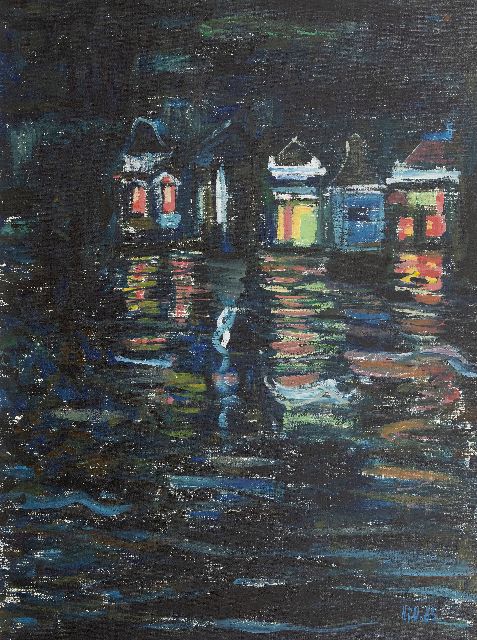 Martin van Waning | Haven bij nacht, olieverf op doek, 30,2 x 40,3 cm, gesigneerd l.o.