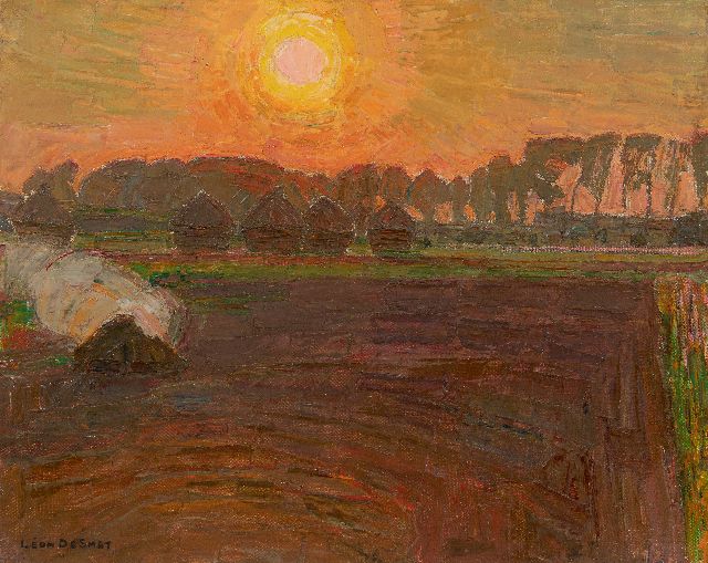 John Franciscus Hoppenbrouwers | Zonsondergang, olieverf op paneel, 18,2 x 24,1 cm, gesigneerd r.o.