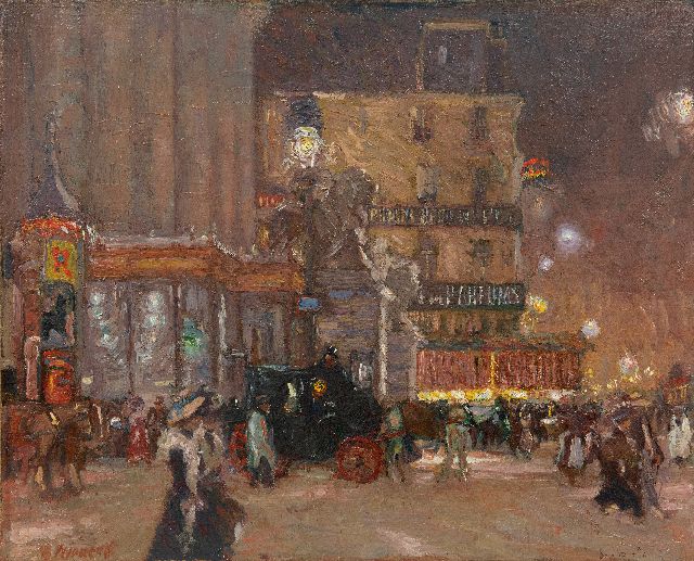 Arjen Galema | Place Pigalle in Parijs bij avond, olieverf op paneel, 15,8 x 22,0 cm, gesigneerd r.o. en te dateren ca. 1918-1925