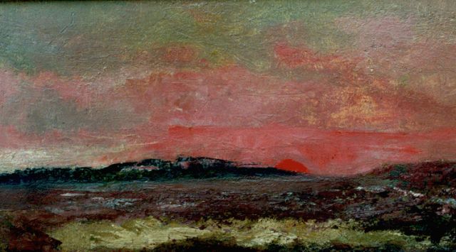Isaäc Naarden | Duinlandschap bij zonsondergang, olieverf op paneel, 25,0 x 45,0 cm, gesigneerd l.o.