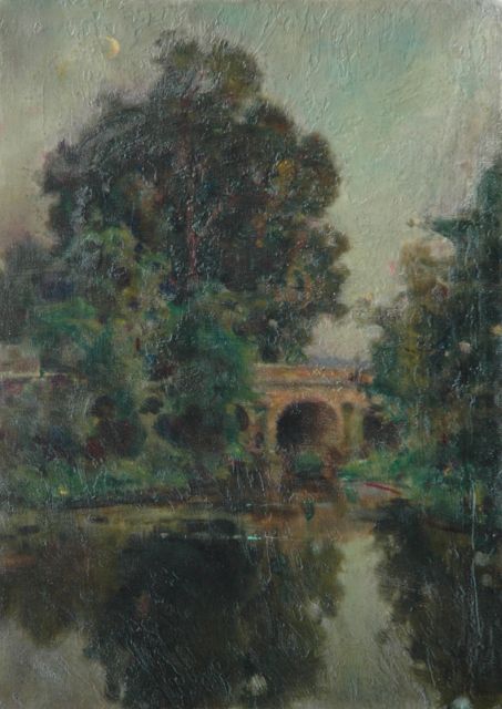 Jules Alexis Muenier | Vijver bij maanlicht, olieverf op doek, 46,3 x 33,2 cm