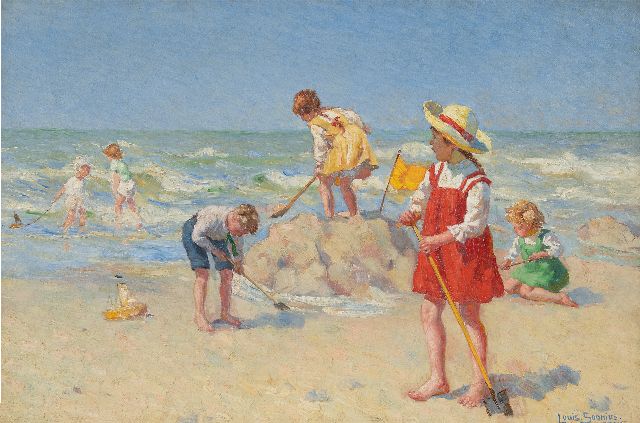 Louis Soonius | Strandplezier, olieverf op doek, 40,2 x 59,8 cm, gesigneerd r.o. en gedateerd 1917