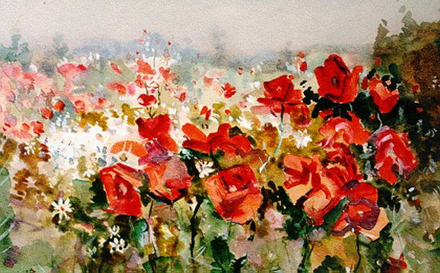 Ernest Filliard | Papavers, aquarel op papier, 16,0 x 13,0 cm, gesigneerd r.o.
