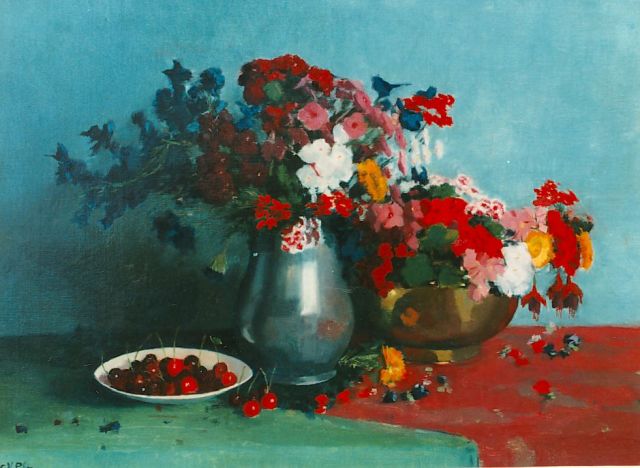 Gottfried van Pelt | Stilleven van bloemen en kersen, olieverf op doek, 56,0 x 76,0 cm, gesigneerd l.o.