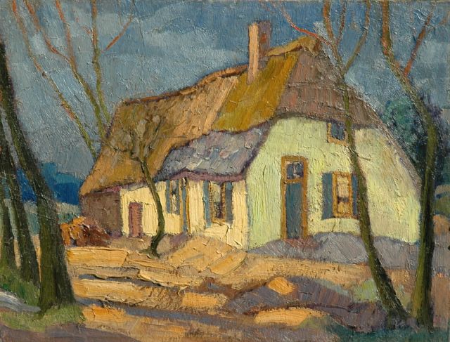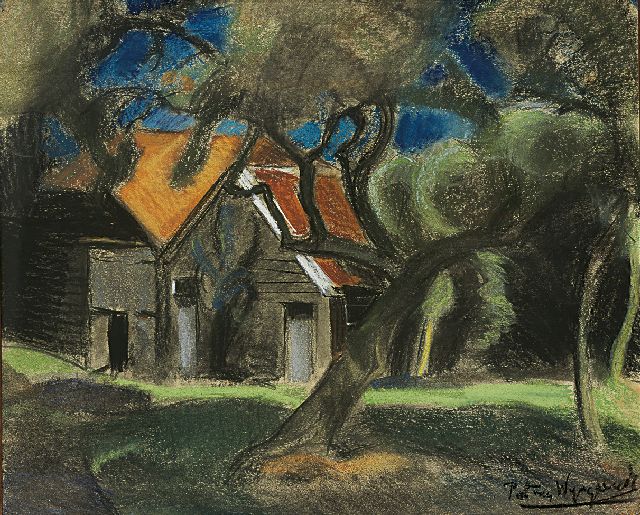 Piet van Wijngaerdt | Schuur onder bomen, pastel op schildersboard, 62,5 x 74,0 cm, gesigneerd r.o. en te dateren 1918-1921