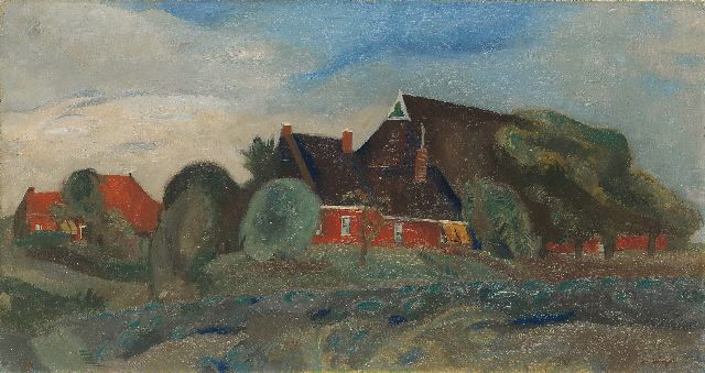 Jan Wiegers | Boerderijen bij Groningen, olieverf op doek, 40,1 x 75,0 cm, gesigneerd r.o. en te dateren ca. 1930-1933