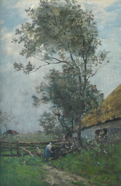 Jozef Neuhuys | Boerin aan het werk, olieverf op doek, 48,6 x 32,1 cm, gesigneerd r.o.