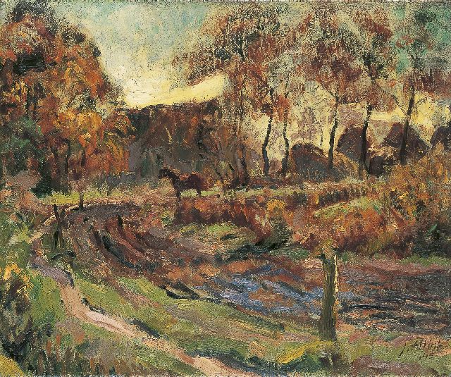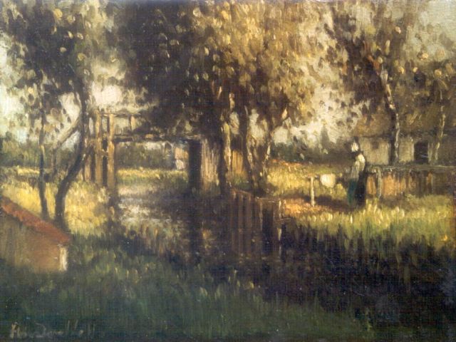 Bernard Blommers | In de moestuin, olieverf op doek, 25,0 x 35,3 cm, gesigneerd r.o. met monogram