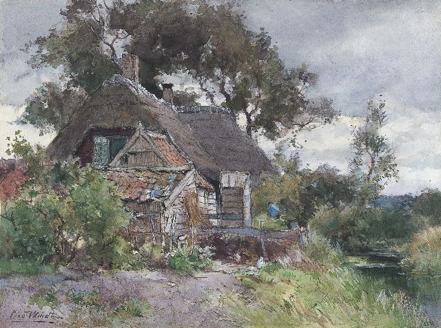 Chris van der Windt | Boerderij aan het water, aquarel en gouache op papier, 42,3 x 70,2 cm, gesigneerd l.o. en gedateerd 1906