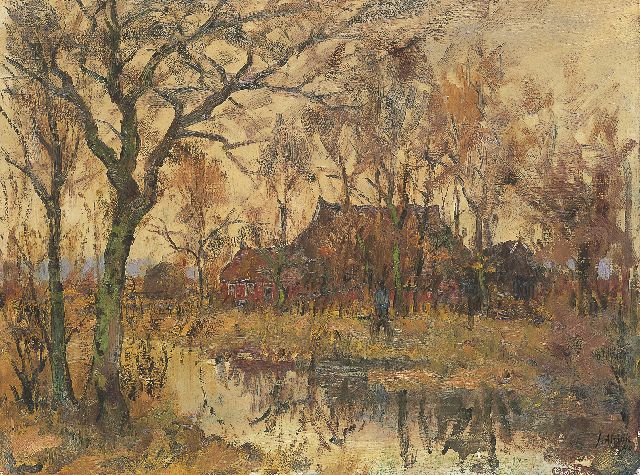 Louis Apol | Boerderij langs een vaart, olieverf op doek, 39,9 x 32,5 cm, gesigneerd l.o.