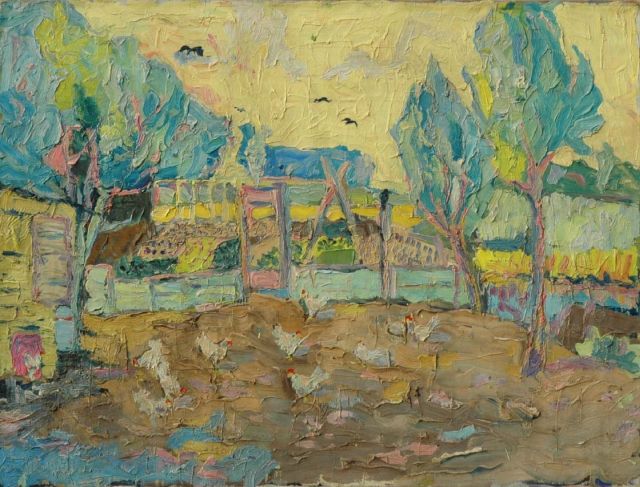Ben Viegers | In de moestuin, olieverf op doek, 42,5 x 57,6 cm, gesigneerd r.o.