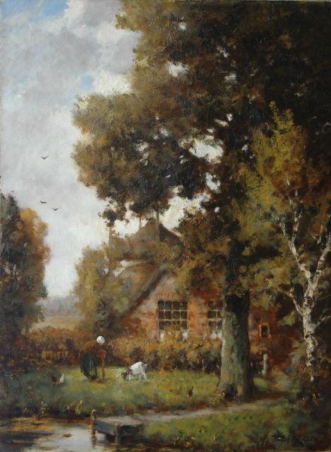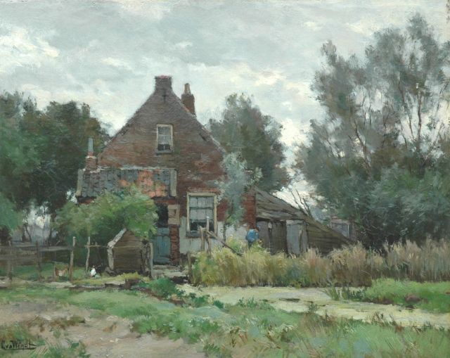 Chris van der Windt | Erf met boer en kippen, olieverf op doek, 40,2 x 50,2 cm, gesigneerd l.o.
