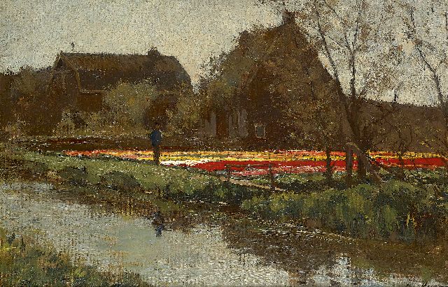 Anton Koster | Tulpenvelden in het voorjaar, olieverf op doek op board, 29,8 x 43,7 cm, gesigneerd r.o.