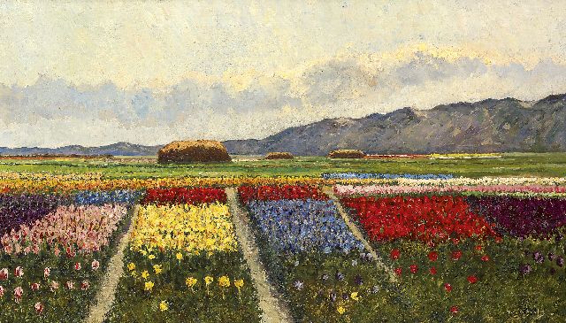 Daniël Noteboom | Bloeiende bollenvelden bij Noordwijk, olieverf op doek, 45,9 x 60,8 cm, gesigneerd r.o.