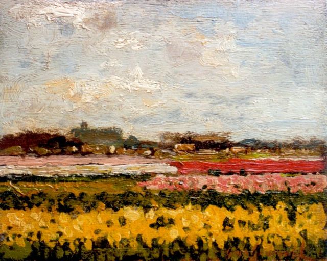 Cornelis Groeneveld | Bollenvelden, olieverf op paneel, 18,0 x 22,7 cm, gesigneerd r.o.
