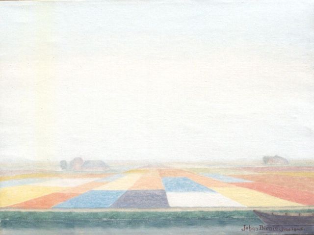 Johan Birnie | Bollenvelden, olieverf op doek, 30,5 x 40,7 cm, gesigneerd r.o. en gedateerd June 1945
