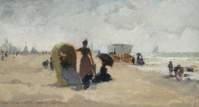 Arthur Briët | Strandgezicht, olieverf op paneel, 14,9 x 26,0 cm, gesigneerd r.o. en te dateren ca. 1895