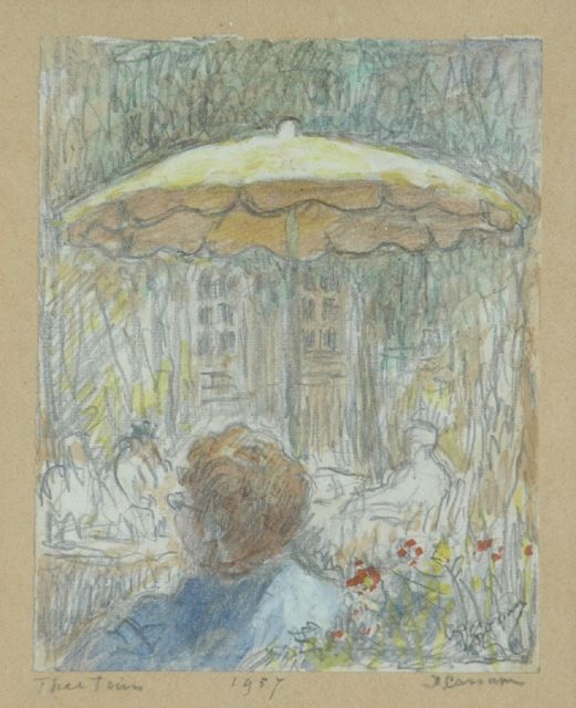 Ko Cossaar | Theetuin, krijt en aquarel op papier, 14,5 x 11,5 cm, gesigneerd r.o. en gedateerd 1957