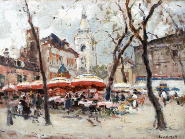 Evert Moll | Terras op het Montmartre Parijs, olieverf op doek, 30,5 x 40,0 cm, gesigneerd r.o.