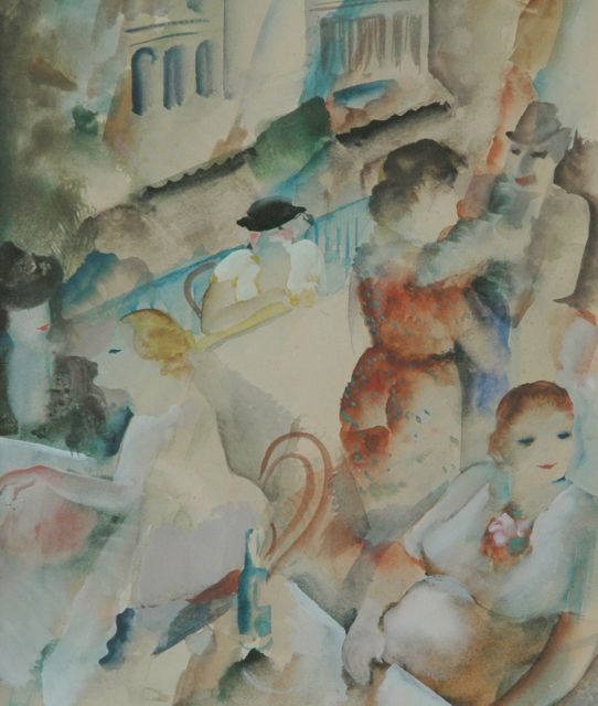 Raphaël de Buck | Café-dansant, aquarel op papier, 31,0 x 24,5 cm, gesigneerd r.o.