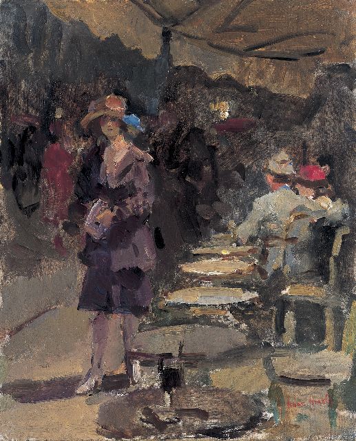 Isaac Israels | Terrasscène, olieverf op doek, 46,0 x 38,2 cm, gesigneerd r.o.