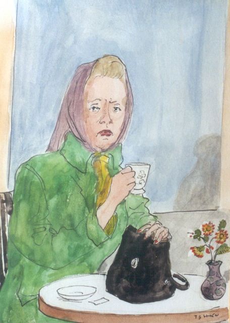 Harm Kamerlingh Onnes | Het kopje thee, viltstift, ballpoint en aquarel op papier, 18,5 x 14,1 cm, gesigneerd r.o. met monogram en gedateerd '73