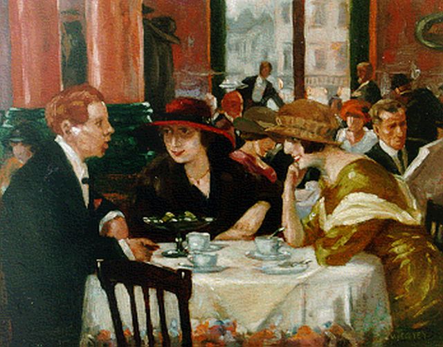 V. Tegyey | Theetijd, olieverf op paneel, 23,2 x 29,0 cm, gesigneerd r.o.
