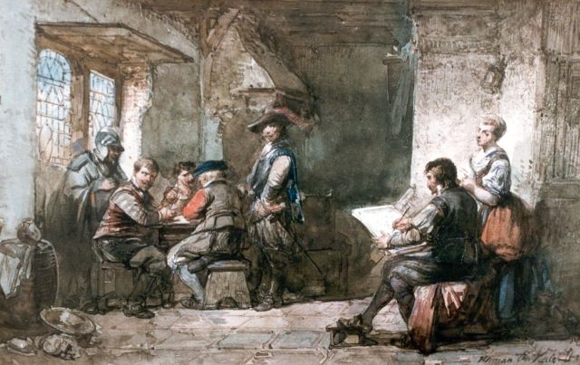 Herman ten Kate | Kaartspelers in de herberg, aquarel op papier, 17,0 x 23,5 cm, gesigneerd r.o.