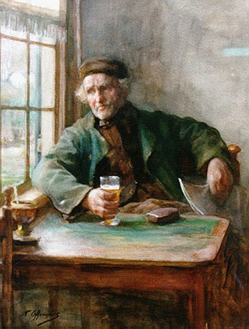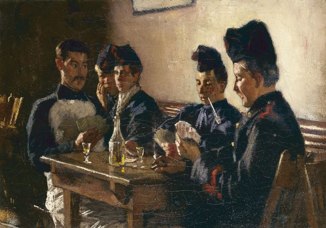 Heinrich Martin Krabbé | In de kantine, olieverf op doek, 24,5 x 34,3 cm, gesigneerd l.o.vaag