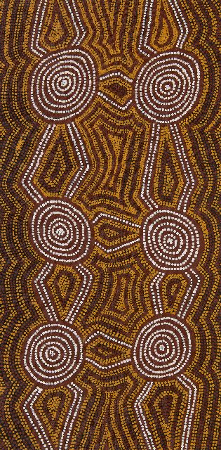 Morris Gibson Tjapaltjarri | Tingari stories, olieverf op doek, 91,0 x 46,0 cm, gesigneerd verso