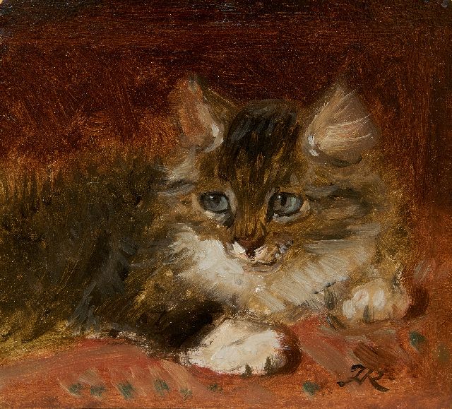Henriette Ronner | Jong poesje, olieverf op papier op paneel, 12,2 x 12,7 cm, gesigneerd r.o. met monogram