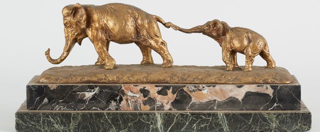 Guido Cacciapuoti | Olifantenmoeder met kalf, verguld brons en marmer, 13,0 x 40,0 cm, gesigneerd op basis
