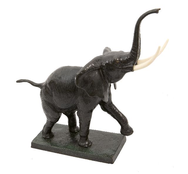Karl Heynen-Dumont | Lopende olifant, brons en ivoor, 44,0 x 48,0 cm, gesigneerd op basis