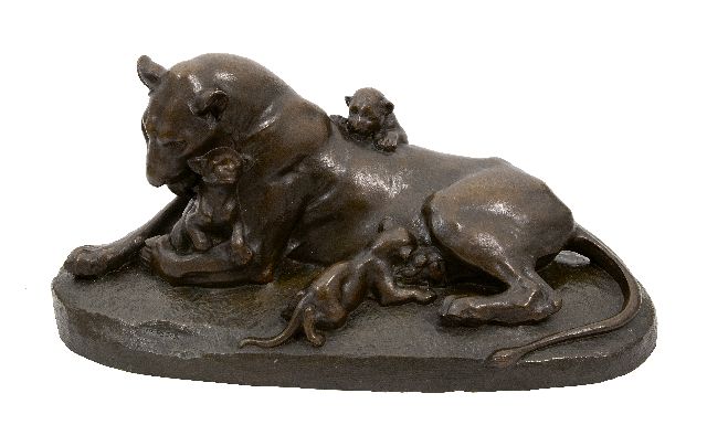 Victor Peter | Liggende leeuwin met drie welpen, brons, 33,0 x 72,0 cm, gesigneerd op de basis