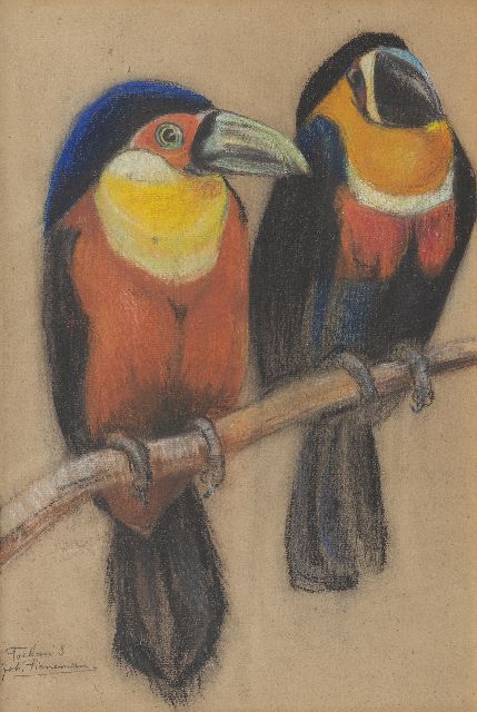 Johanna Pieneman | Twee toekans, pastel op papier, 36,7 x 25,0 cm, gesigneerd l.o.