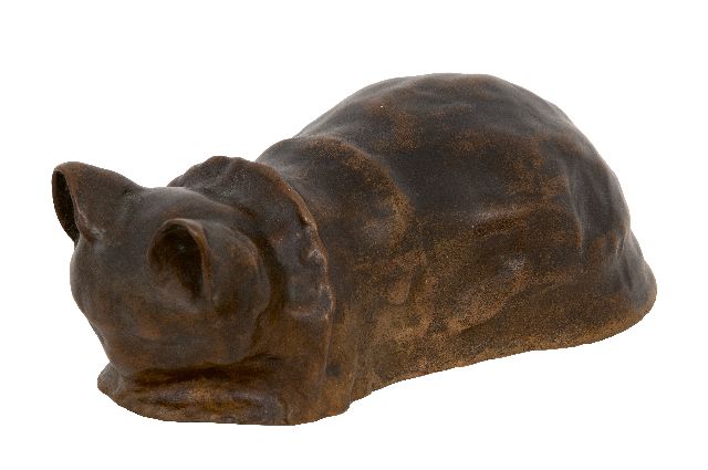 Eugenia Zink Everett | Spinnende poes, brons, 9,0 x 20,0 cm, gesigneerd op de onderkant en gedateerd 1937