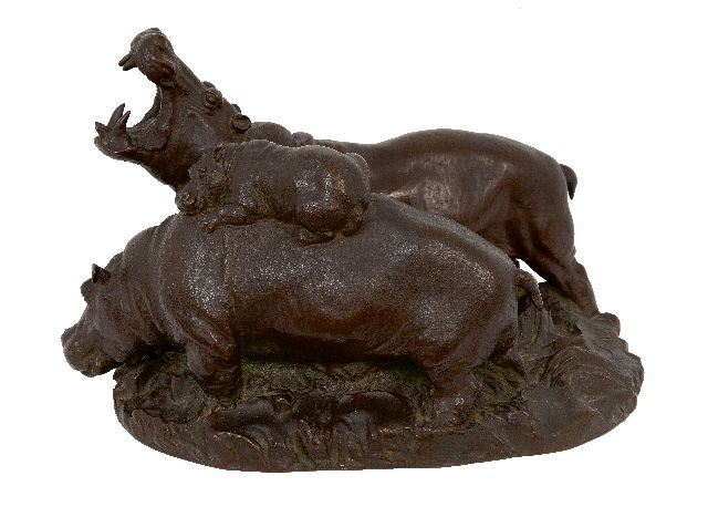 Otto Jarl | Nijlpaardenfamilie, brons, 18,0 x 31,0 cm, gesigneerd op de basis