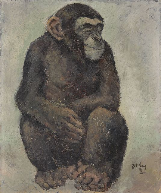 Jan van Heel | Zittende aap, olieverf op board, 60,0 x 50,0 cm, gesigneerd r.o. en gedateerd '41