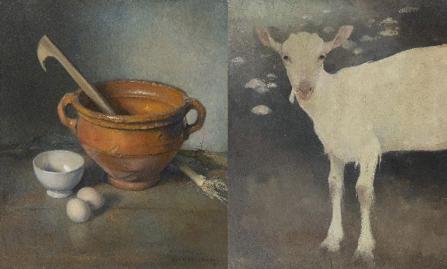 Jemmy van Hoboken | Geitje; Stilleven met aardewerken test, olieverf op paneel, 50,2 x 42,7 cm, gesigneerd r.o. en gedateerd '42