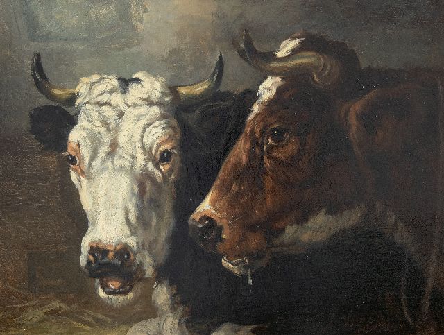 Richard Burnier | Twee koeienkoppen, olieverf op paneel, 32,3 x 45,0 cm, gesigneerd verso