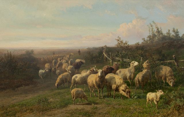 Jan Bedijs Tom | Schaapskudde in weids heidelandschap, olieverf op paneel, 60,3 x 94,0 cm, gesigneerd l.o.