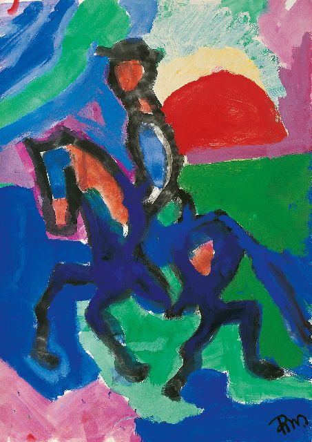 Gerrit Benner | Man en paard, gouache op papier, 70,0 x 50,0 cm, gesigneerd r.o. en verso en te dateren ca. 1957