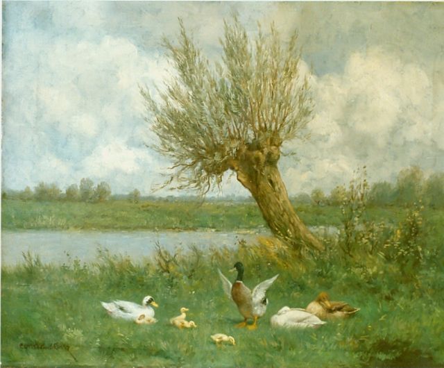 Constant Artz | Eenden in het gras, olieverf op doek, 40,0 x 50,3 cm, gesigneerd l.o.
