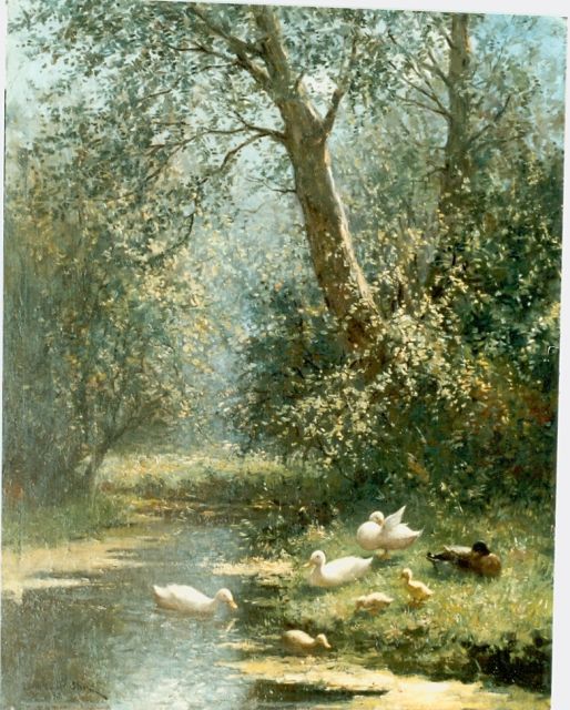Constant Artz | Eendjes bij de bosvijver, olieverf op paneel, 50,1 x 40,0 cm, gesigneerd l.o.