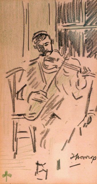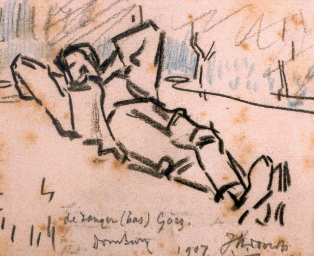 Willy Sluiter | Vader op weg naar de horstbrink, krijt op papier, 23,0 x 17,0 cm, gesigneerd r.o.