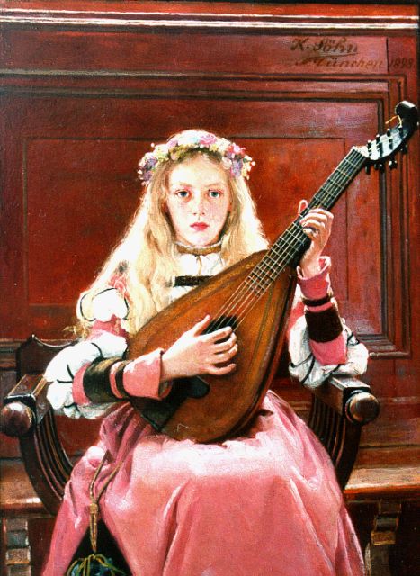 Karl Wilhelm Sohn | Meisje met luit, olieverf op paneel, 18,0 x 13,7 cm, gesigneerd r.b. en gedateerd 1898