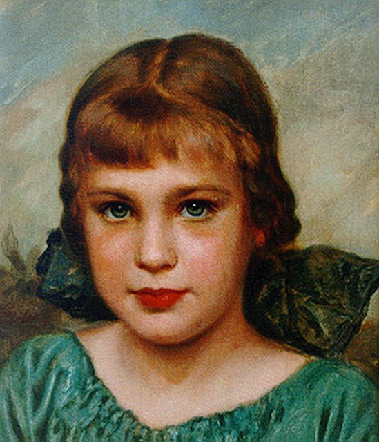 Fritz Erler | Portret van een jong meisje met strik, olieverf op doek op paneel, 32,0 x 28,0 cm, gesigneerd l.o.