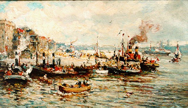 Johan Hendrik van Mastenbroek | Havengezicht, olieverf op doek, 37,0 x 51,0 cm, gesigneerd r.o. en gedateerd 1900